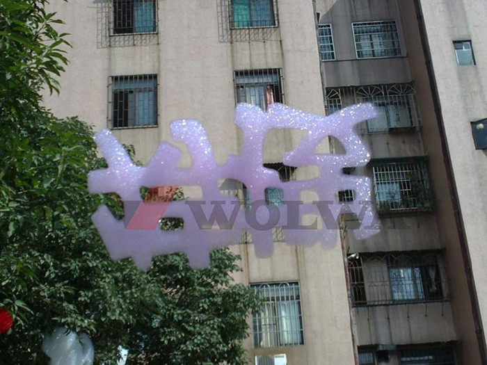 云朵机是特殊氦气通过特殊的发泡装置,有无数个小的氦气泡泡组合成各种形状的人造云朵是由于氦气比空气轻,所以人造云朵可以轻轻飞向天空中随着时间的延 长,泡泡不断破裂,最终消失在空中,云朵机产生的云朵能打造出各种形状,各种色彩的云朵。云朵造型器可根据需要设计不同的图案外形或标志标语。这些外形各 异的标志在天上自由飞舞,似五彩祥云一般。80cm左右的一瓶气使用时间在30分钟左右