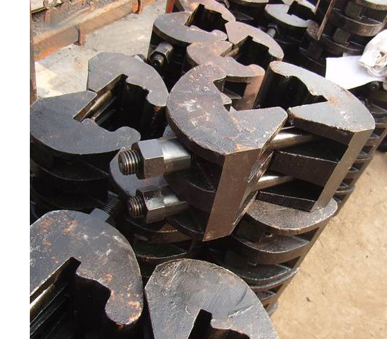 夹轨器与钢轨是通过夹钳轴后端的孔连接,机车行走时,拖(推)动夹轨器同步移动时,导轮在夹轨器的重量压力下可沿蛇形轨道滚动,并经引导轮支架、导钳轴带动夹轨器整体在固定轴沿轨道面浮动。